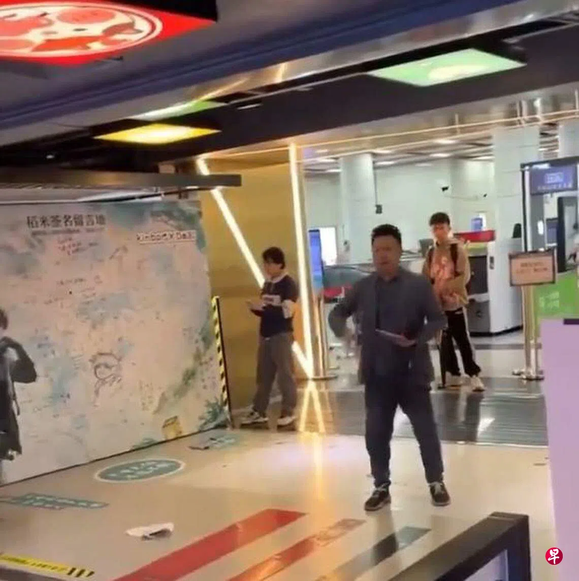 现场聚集许多民众旁观,即便有人上前解释《盗墓笔记》是中国动漫,但男子依旧痛批出现日漫“太过分”,“影响社会稳定”,随即动手破坏现场的签名墙,还用力踢断插画的看板,并大骂现场民众“不爱国”。
