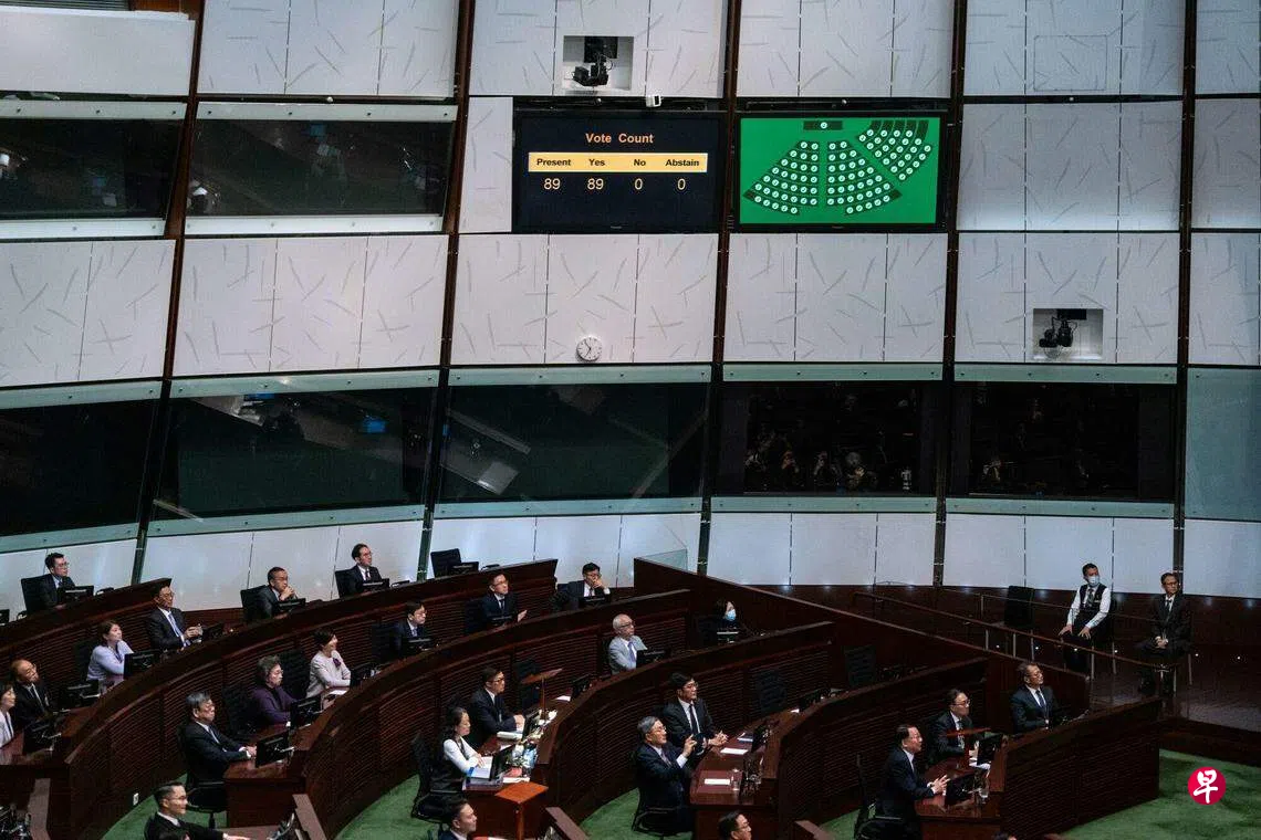 香港立法会星期二(3月19日)完成《基本法》23条立法的二读和三读程序后,议员们以全票通过草案。草案将于星期六(23日)刊宪生效。香港特首李家超说,立法会当天完成了历史使命。