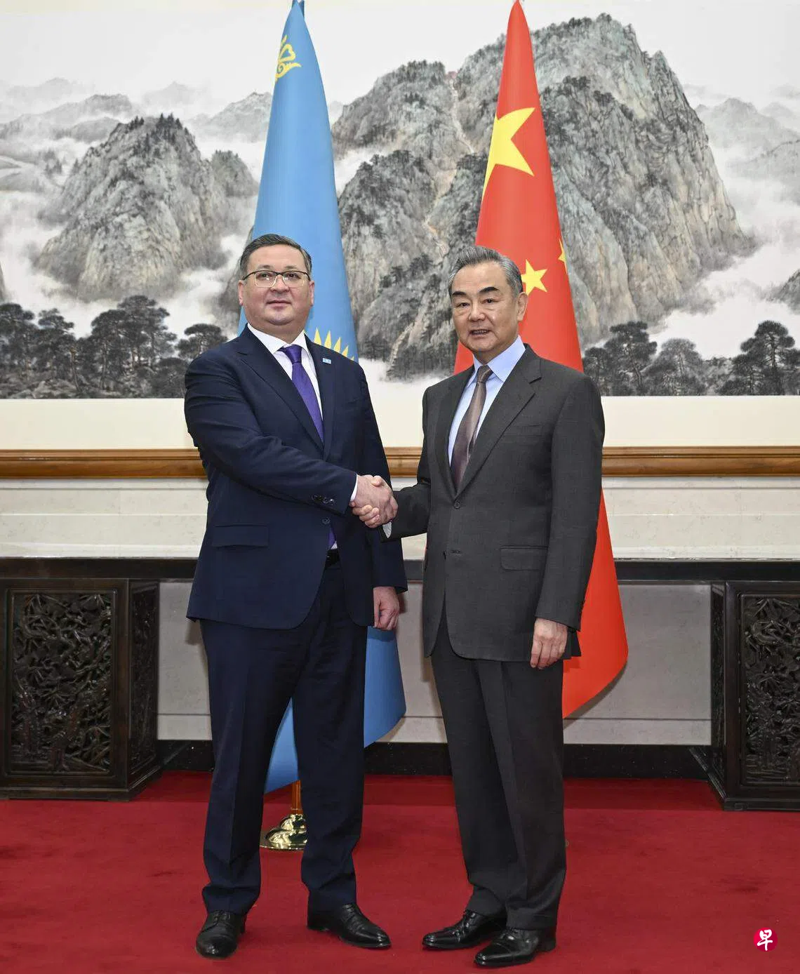 据中国外交部官网消息,中共政治局委员、中国外交部长王毅星期五(3月29日)在北京同哈萨克斯坦副总理兼外长努尔特列乌举行首次中哈外长战略对话。