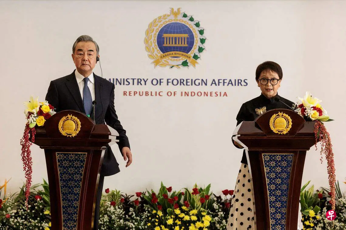 据中国外交部官网新闻稿,王毅星期四(4月18日)在印尼首都雅加达与印尼外长特蕾诺举行会谈,两人在会晤后举行记者会。