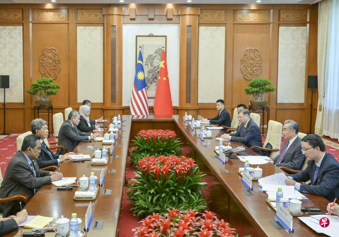中国外交部长王毅在与马来西亚外长莫哈末哈山会谈时指出,中方愿同马方维护国际公平正义,捍卫全球南方共同利益。