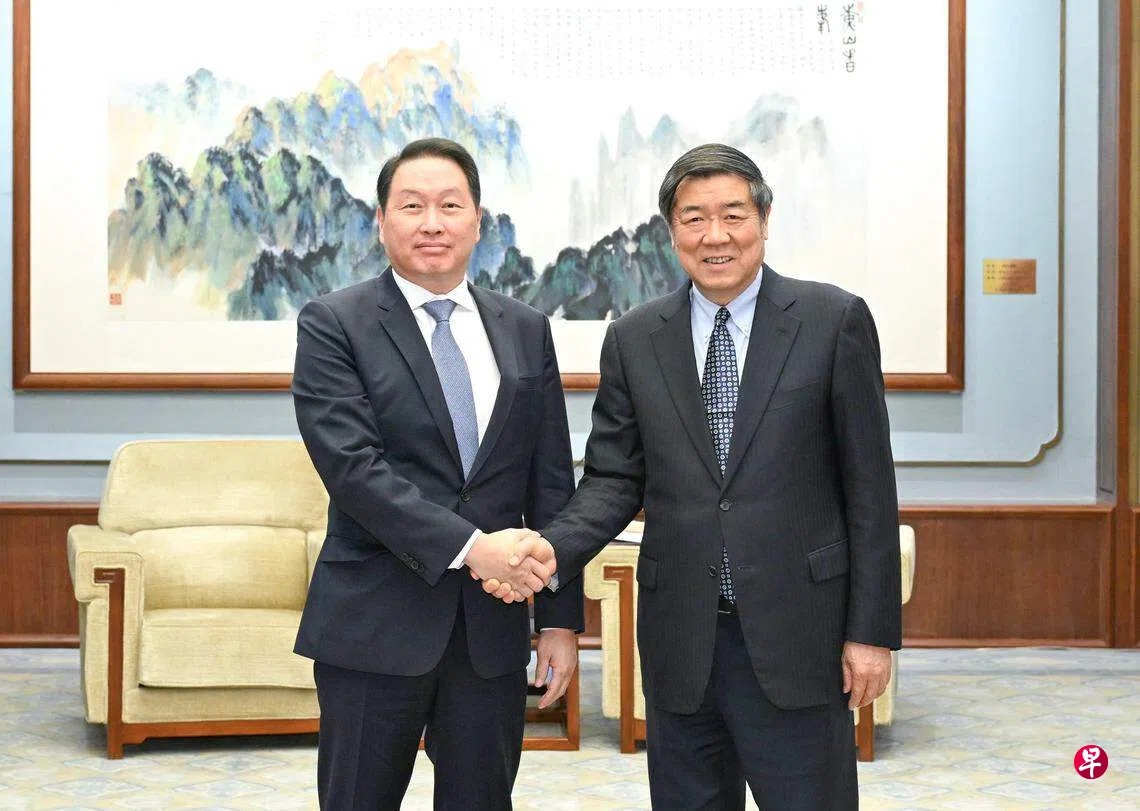 中方新闻稿引述崔泰源说,SK集团对中国经济充满信心,将持续推进在华投资合作。