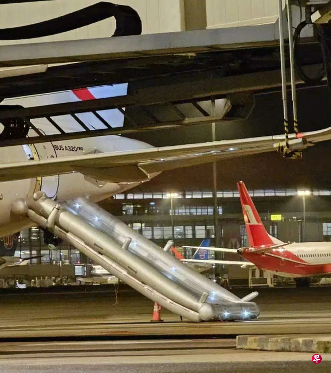 据《新京报》星期二(30日)引述机场一知情人士说,涉事客机是一架空客A320客机。知情人士还称,初步了解系机组成员矛盾导致应急滑梯被放出,涉事客机上载有抵达浦东机场的乘客,该事件导致涉事客机暂时退出运营。
