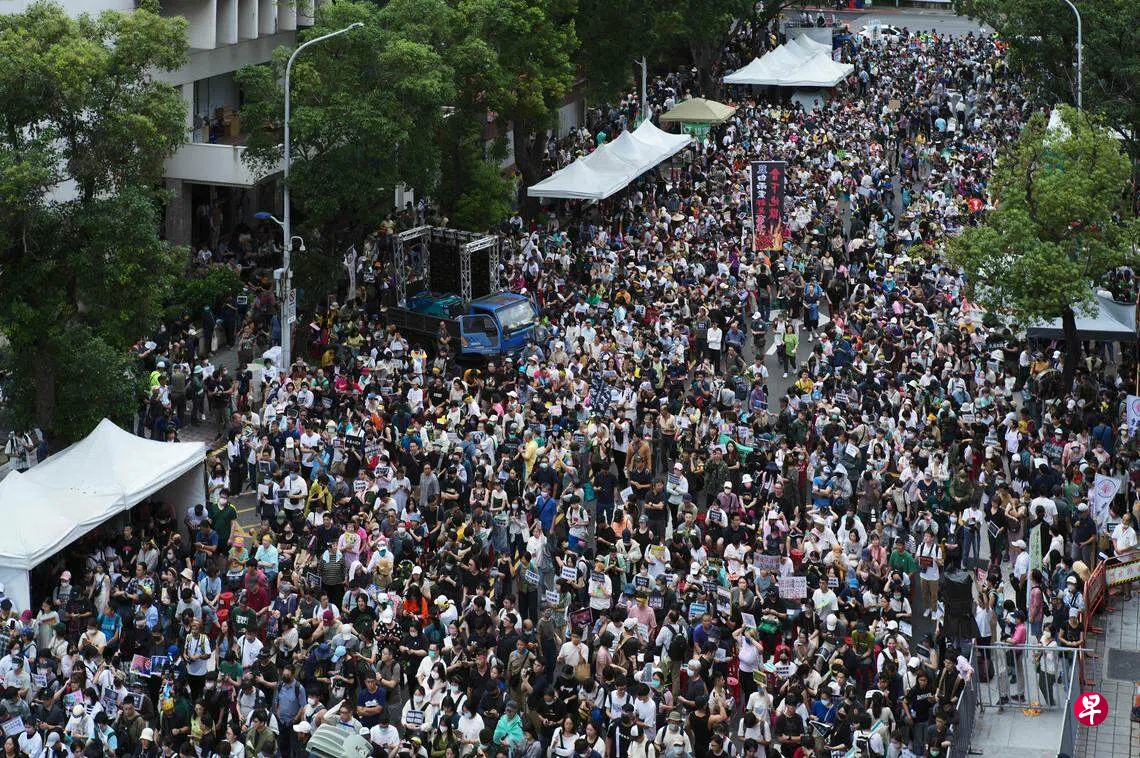 台湾立法院改革法案星期五(5月24日)续审,截至下午近4时,已有逾万人聚集立法院外示威抗议。