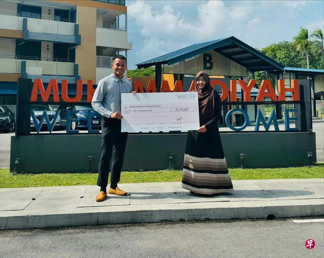 新加坡莫罕默迪亚福利院(Muhammadiyah Welfare Home)星期二在脸书上传一张图片,图片中哈山将一张1万新元的支票递给机构负责人马吉德(Rahmatunnisa Abdul Majeed)。哈山还与那里的孩子们进行互动。