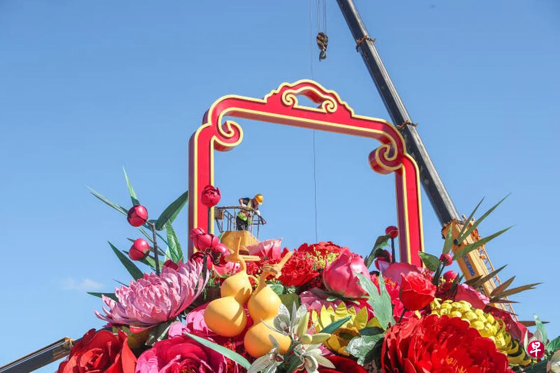 花篮的吊装在星期天(9月22日)完成。花坛顶高18米,篮体高16米,预计星期三正式亮相前,还将在花坛底部摆放花卉构成如意图案。