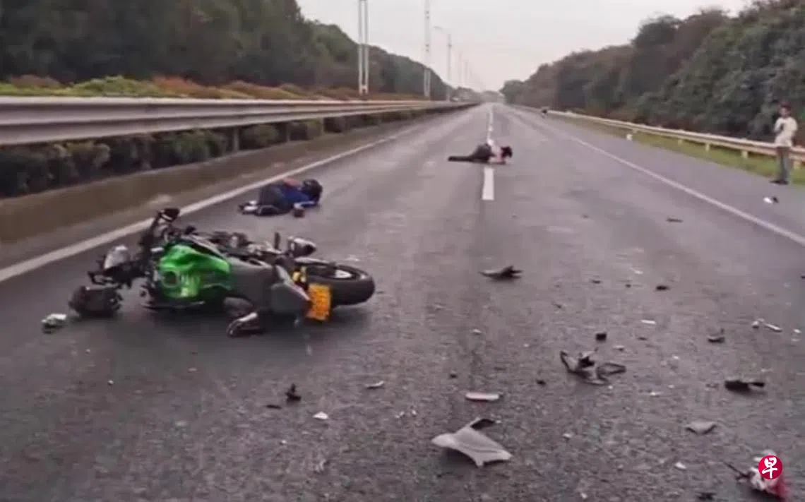 网传行车记录仪拍摄的画面显示,上星期天(9月29日)下午5时20分,一辆摩托在苏州吴江区太湖附近的高速路上飞驰,前方不远处有一条岔路,另一辆轿车正打算汇入主路,由于摩托速度太快,完全没有时间反应,直接与汇入主路的轿车相撞。