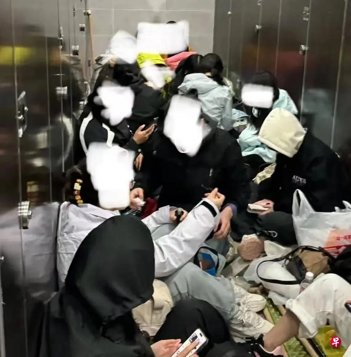 网传视频显示,许多人或坐或躺在厕所内过夜,有人盖着毡子,有人则戴着帽子席地而坐。还有网友留言称,餐厅人满为患,自己一开始都没能进去,后来才找到位置。