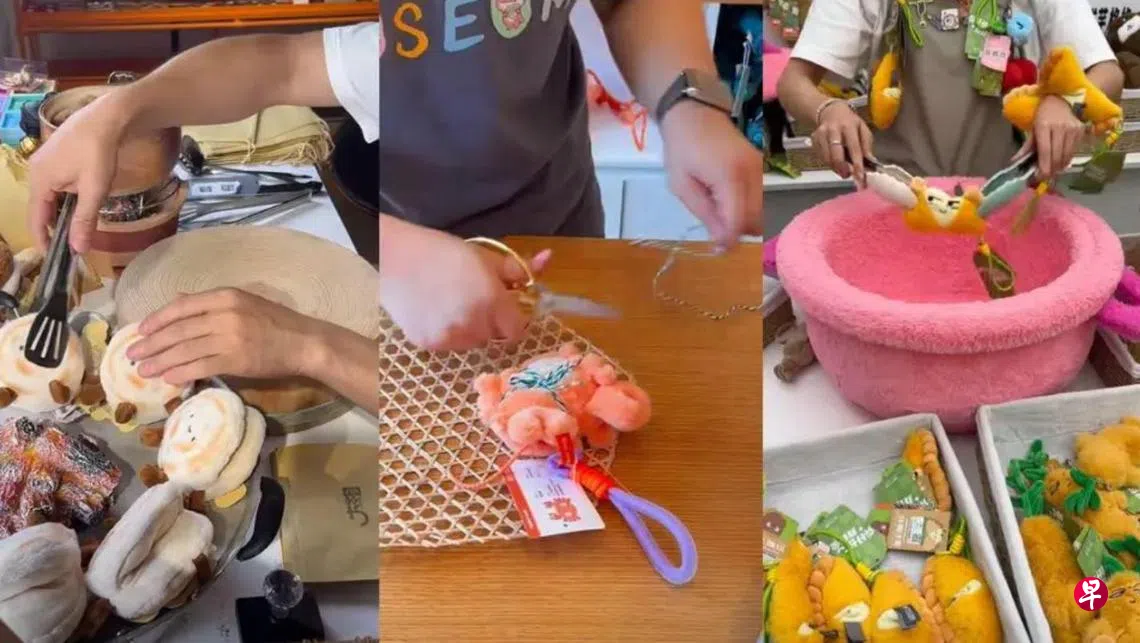 一连串对话过后,顾客从店员手中接过的不是冒着热气的食物,而是由一捧毛绒玩具扎成的“麻辣烫花束”。这幕由买家和卖家合力上演的“过家家”,是近来中国最火的文创产品销售方式。
