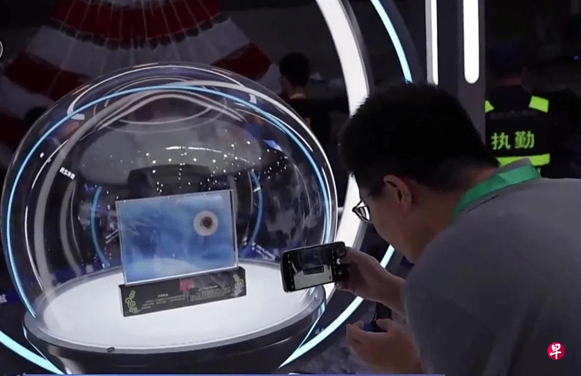 第15届中国国际航空航天博览会星期二(11月12日)开幕,中国探月飞行器嫦娥六号从月背采集的月壤样本首次亮相。
