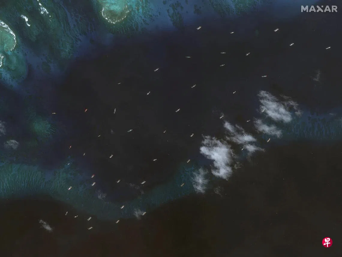 卫星图像显示,约60只中国民用船只在南中国海争议岛屿中业岛(菲律宾称帕加萨岛)附近集结,但菲律宾官方淡化这一行动,称没有担忧的必要。