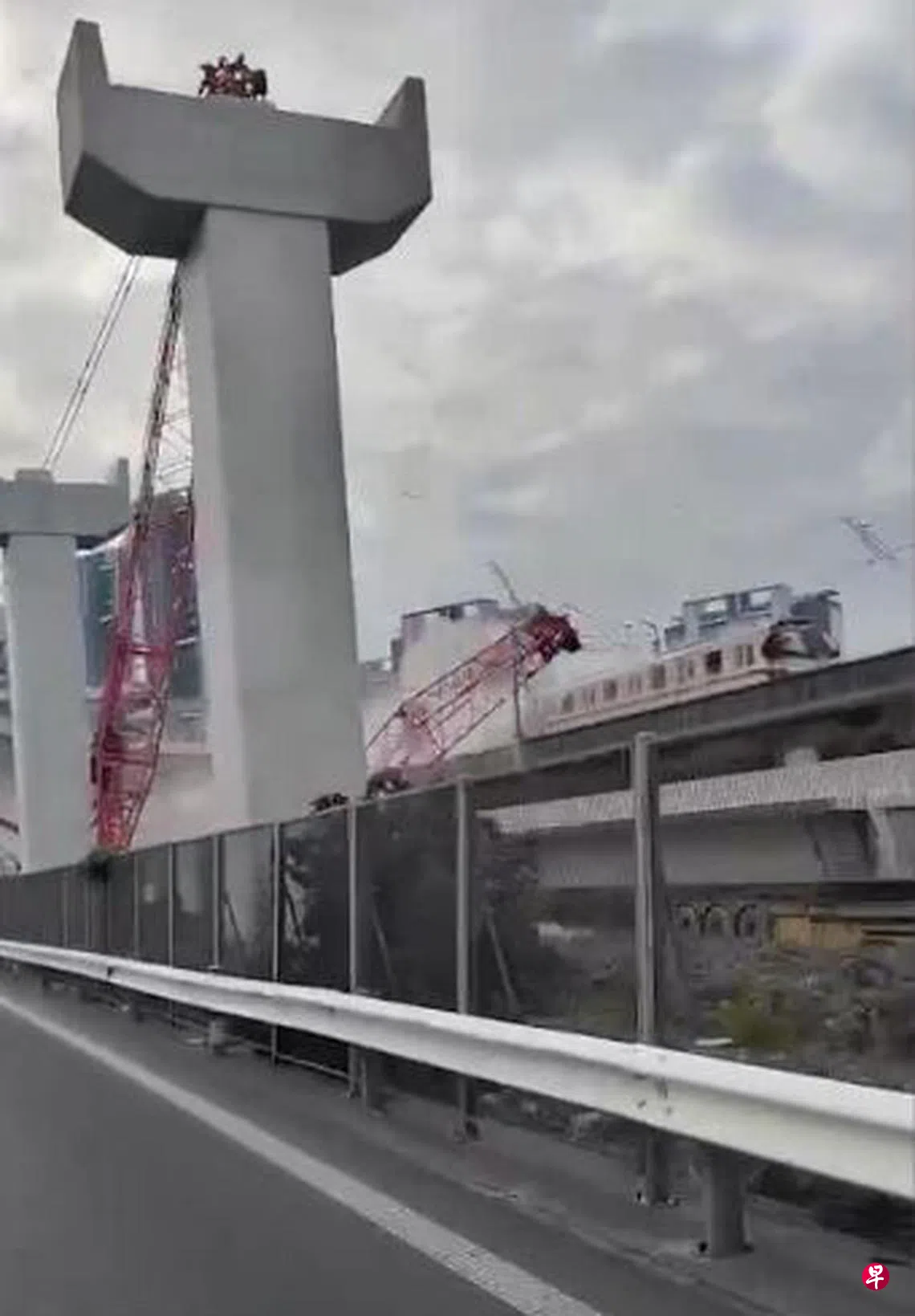 中国上海市地铁11号线星期天(12月22日)早上发生事故,行驶中的地铁列车被一个倒塌的塔吊砸中,车厢受损,无人员受伤。