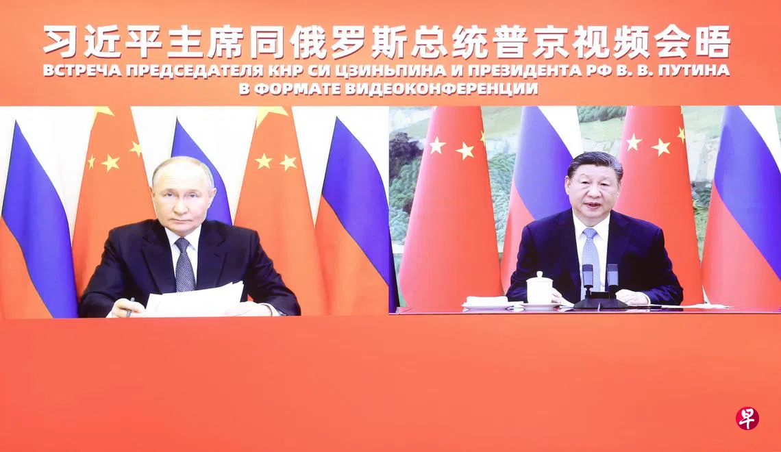 这是美国总统特朗普再度上台后,习近平和普京举行的首个视频会晤。