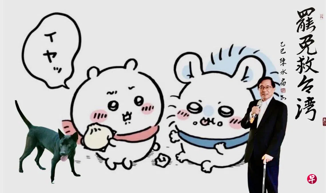 陈水扁星期六(25日)在脸书发文说“罢免救台湾”,并配上一张写着“罢免救台湾”五个字的图。图中出现日本漫画《吉伊卡哇》里的两只动物,其中一只围着蓝色围巾的动物,欲抢围着红围巾动物手中的包子,围着红围巾的动物用日文说着“讨厌”。