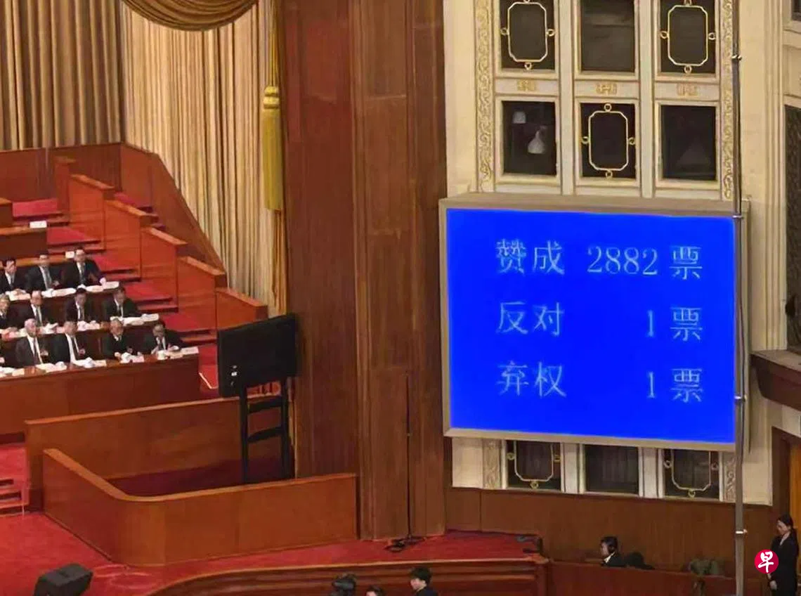 大会2882票赞成、1票反对、1票弃权,表决通过中国总理李强3月5日所做的政府工作报告。