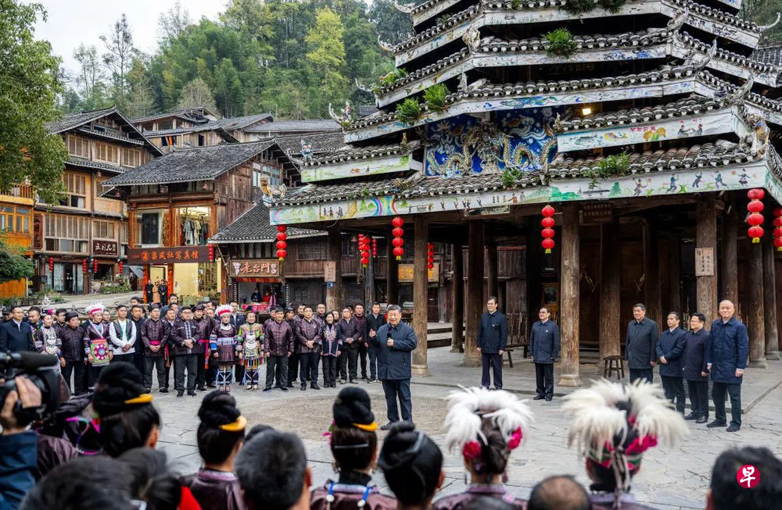 据新华社报道,习近平星期一下午在贵州省黔东南苗族侗族自治州,考察了黎平县肇兴侗寨,了解当地加强基层中共党组织建设和社会治理、保护传承民族传统文化、推进乡村全面振兴等情况。
