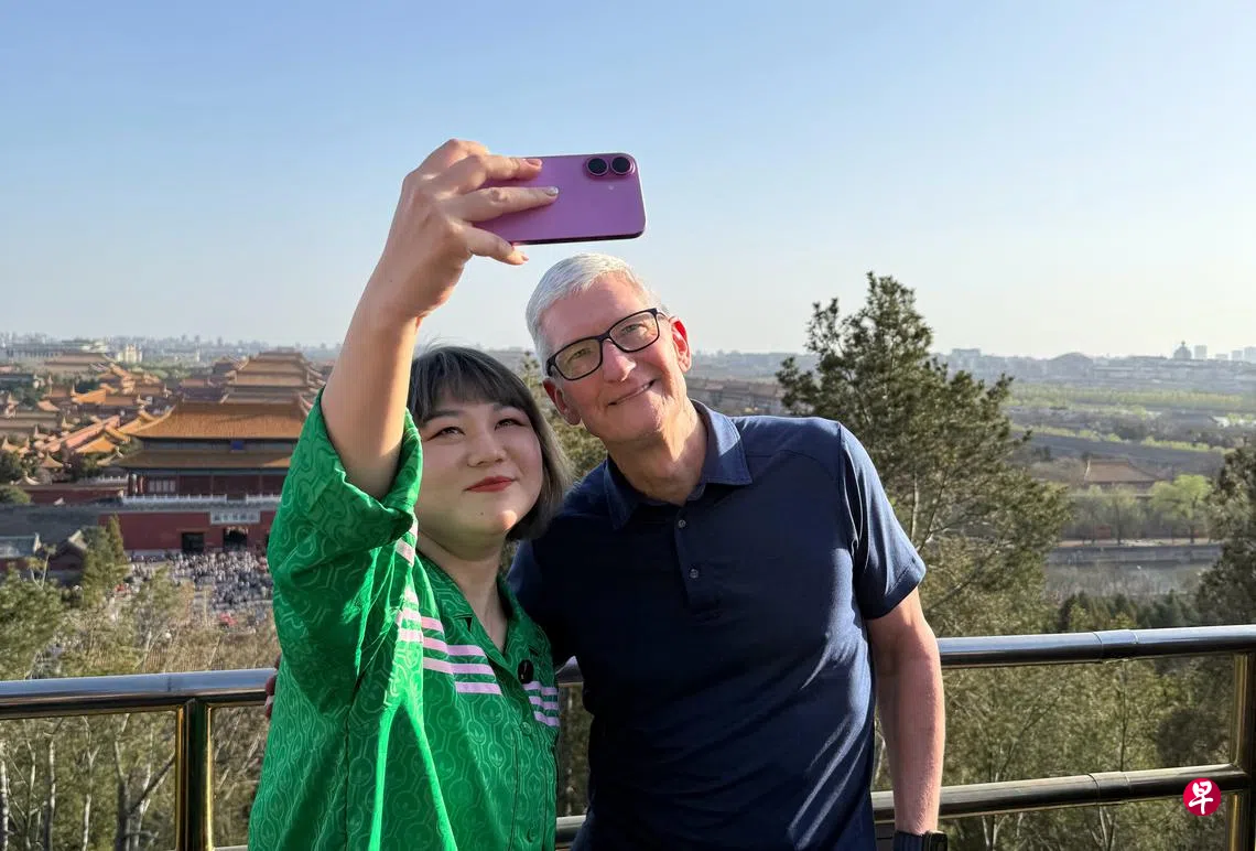时隔四个月,美国科技巨头苹果公司首席执行官库克(Tim Cook)星期六(3月22日)再度现身北京,与壹心娱乐董事长杨天真一起爬景山公园之外,也到北京东城区院落去观看知名音乐人刘宪华(Henry)的演出。