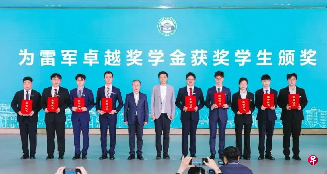 雷军奖学金颁奖会当晚在武汉大学举行,10名学生获得雷军卓越奖学金,每人获得10万元,雷军亲自给获奖学生颁奖,并和他们合影留念。