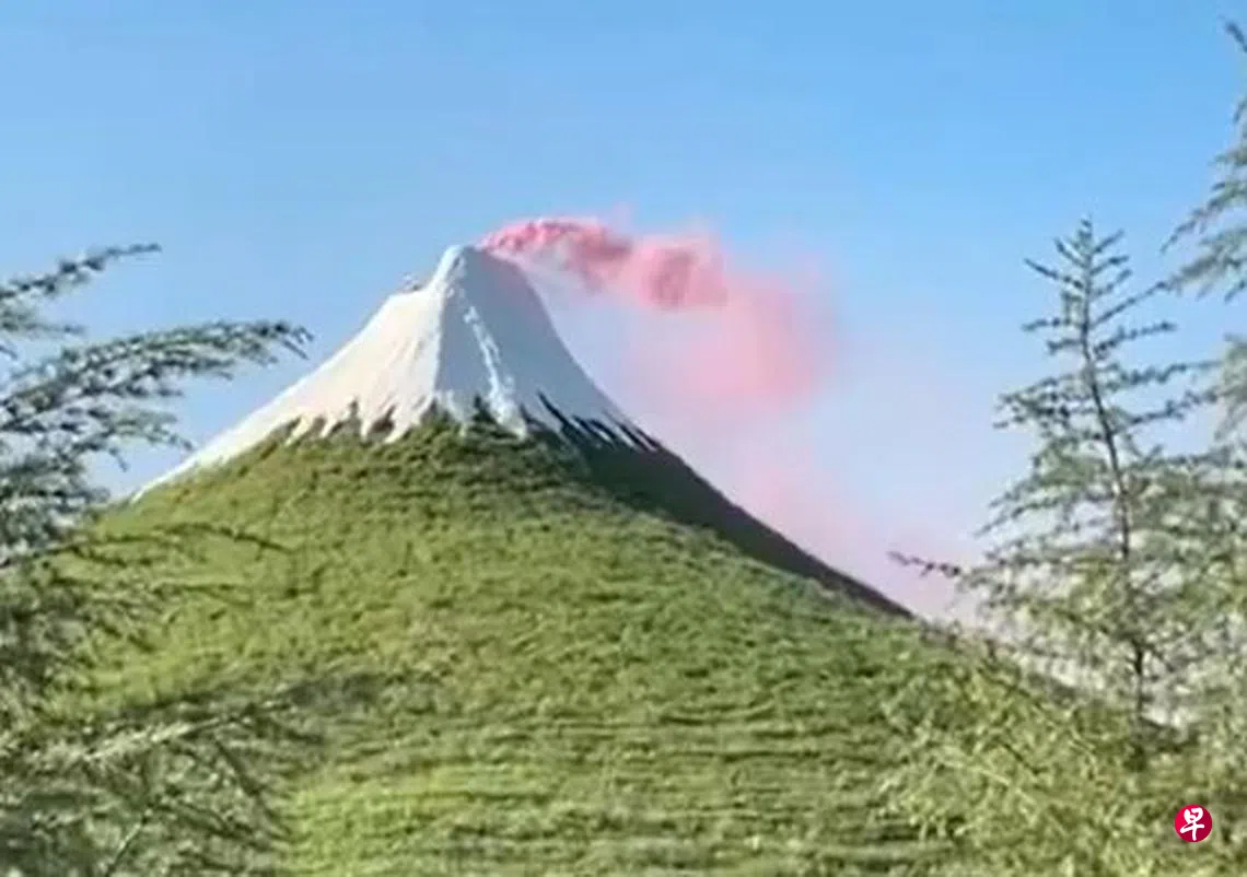 中国五一假期将至,河北省一处人工景点引起网友关注,该景点形似日本富士山,还增加了定时喷发效果。
