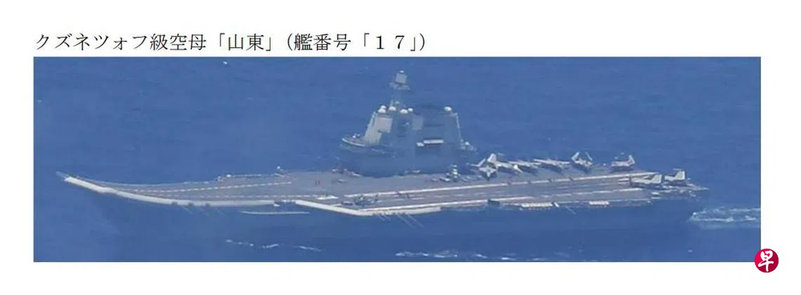 据日本国防部介绍,6月7日下午1时前后,山东舰在隶属冲绳县的宫古岛东南约550公里的海域,与导弹驱逐舰等四艘舰船一起航行。之后,山东舰编队在太平洋向东行驶,9日在冲之鸟岛以北的日本专属经济区内起降了战机与直升机。