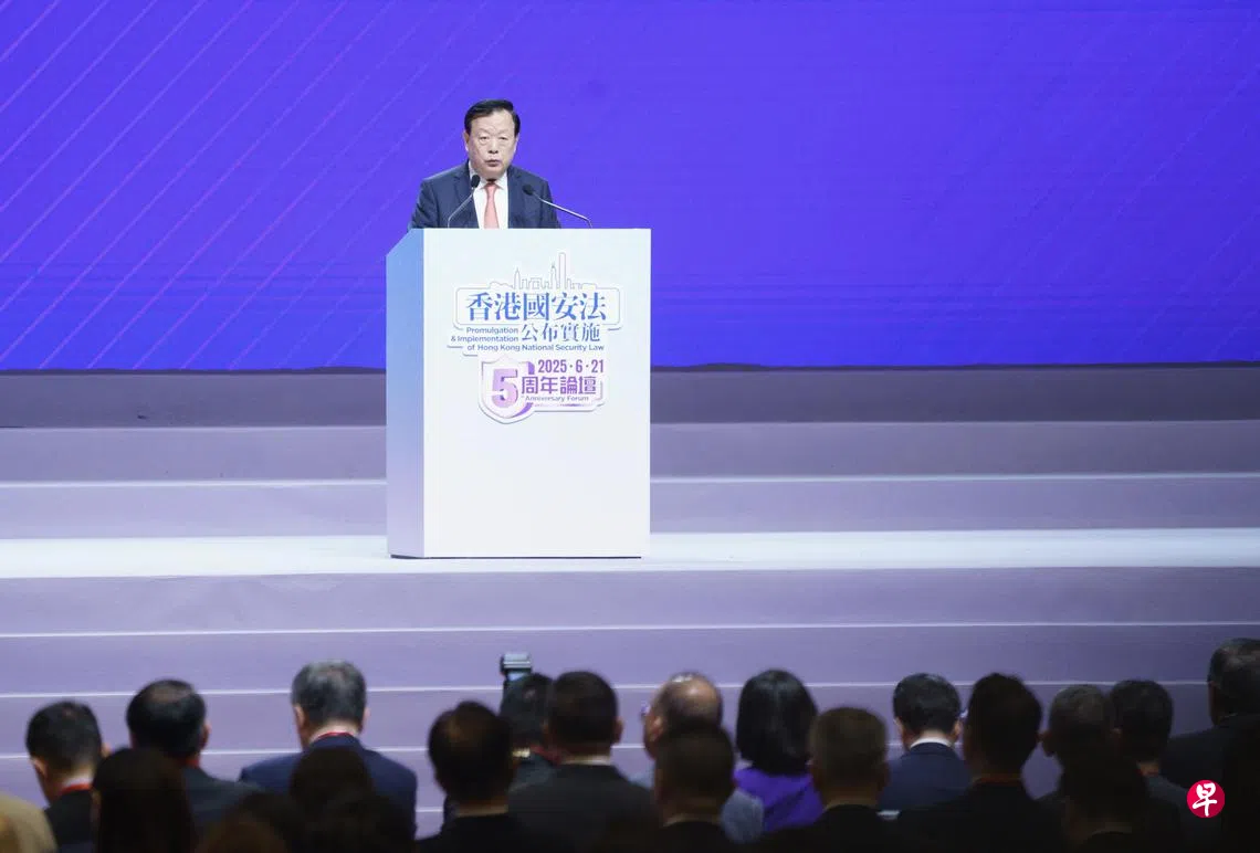 综合中国国务院港澳事务办公室微信公号和香港01报道,夏宝龙星期六(6月21日)在香港会展中心出席香港国安法公布实施五周年论坛上说,香港国安法的制定实施,成为香港由乱到治的“分水岭”,让香港社会告别动荡不安、恢复安定安宁的局面。