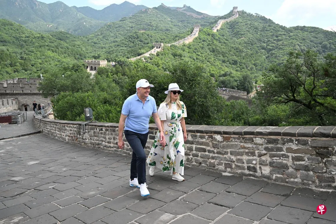 据澳大利亚广播公司(ABC)、路透社等报道,也是澳洲工党领袖的阿尔巴尼斯,星期三与未婚妻海登(Jodie Haydon)登上长城,回顾1973年首位登上长城的澳洲工党总理惠特拉姆(Gough Whitlam)促成澳中建交的历史,期间接受媒体采访。