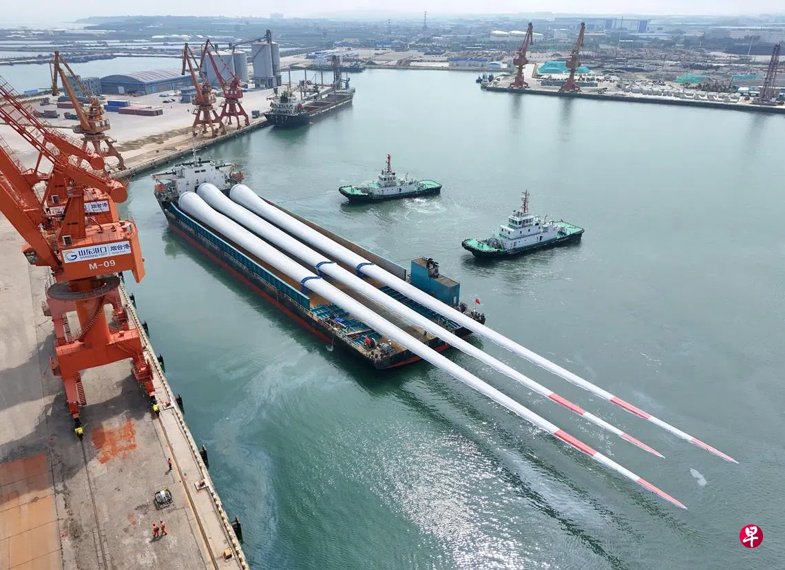 据中新网报道,记者从烟台港获悉,搭载三支超大尺寸海上风电叶片的“盛达联航”轮装船8月1日发运。