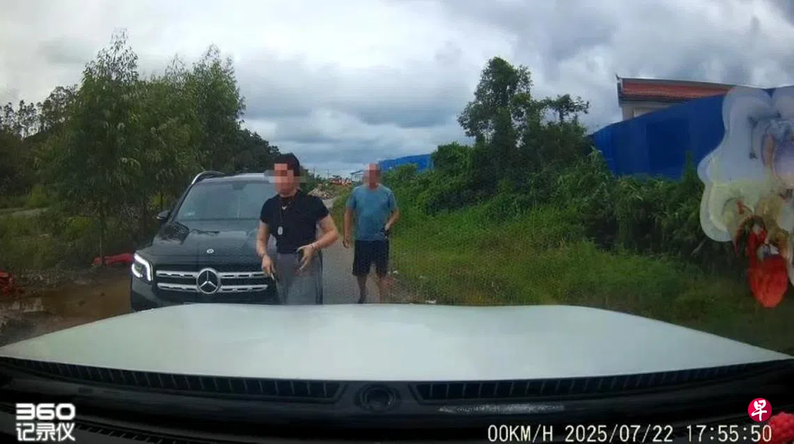 事缘7月22日,广西防城港一名李姓男子在当地江山镇一条狭窄乡道上行驶时,与一辆迎面驶来的黑色奔驰(新加坡称马赛地)相遇。这类情形在乡村道路并不罕见,通常只需一方稍作礼让,两辆车便可顺利通行。