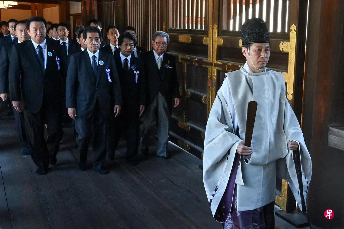 据报道,自民党的两名前经济安保部长高市早苗、小林鹰之等人也前往参拜;跨党派议员联盟“大家一起参拜靖国神社国会议员会”成员进行了集体参拜。