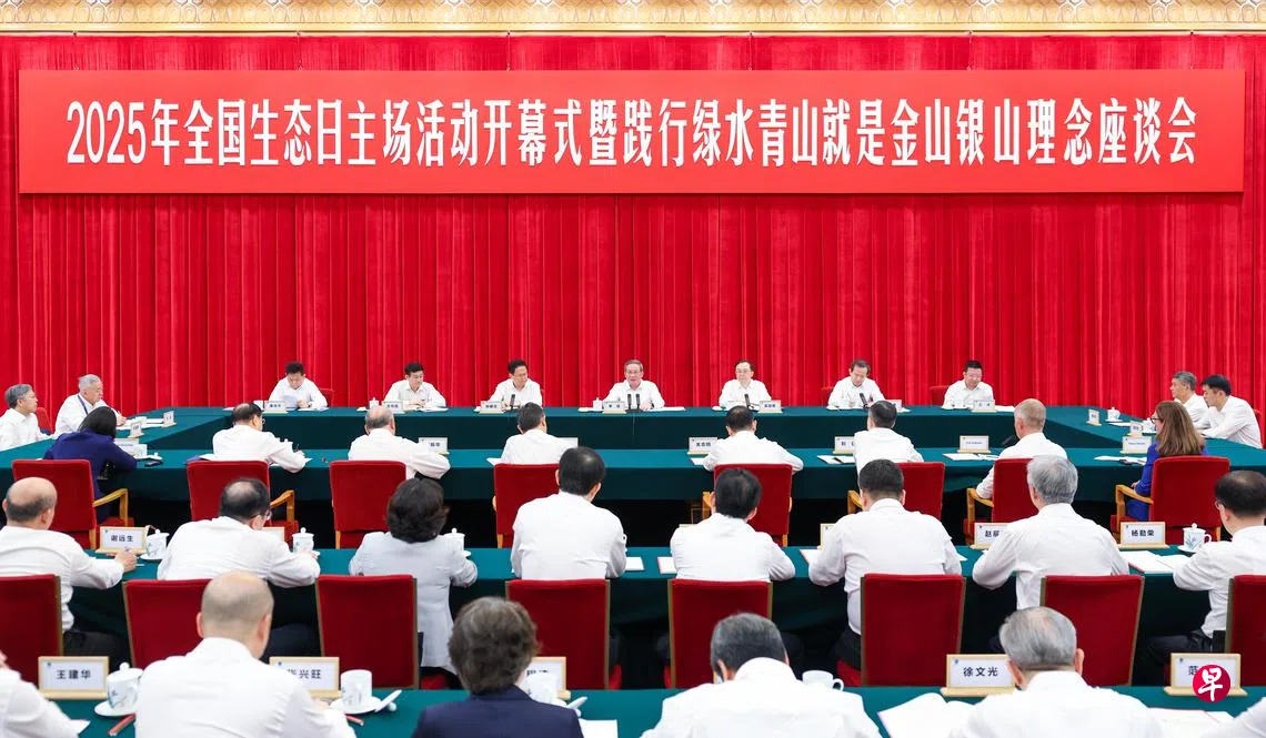 据新华社报道,中共政治局常委、中国国务院总理李强星期五(8月15日)在北京出席2025年全国生态日主场活动开幕式暨践行绿水青山就是金山银山理念座谈会时强调,要深入贯彻习近平生态文明思想,牢固树立和践行绿水青山就是金山银山理念,以更大力度把绿水青山建得更美,以绿色发展方式把金山银山做得更大,奋力谱写新时代生态文明建设新篇章。