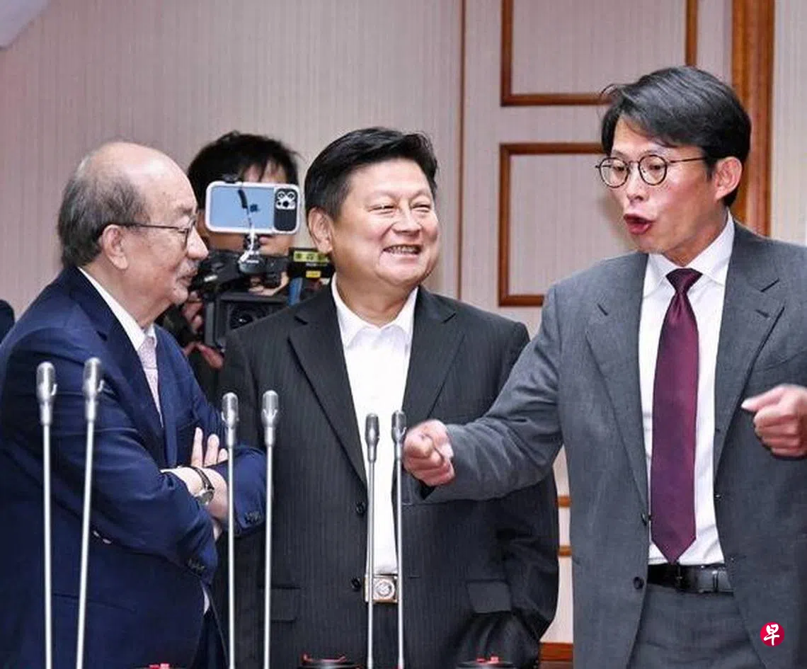 综合中时新闻网、《联合报》、《自由时报》等台媒报道,台湾立法院迎来大罢免后的新会期,国民党立法院党团星期一(9月1日)上午举行干部交接典礼,柯建铭和黄国昌也到场。会前,国民党立法院党团总召傅崐萁与柯建铭、黄国昌握手和交流。