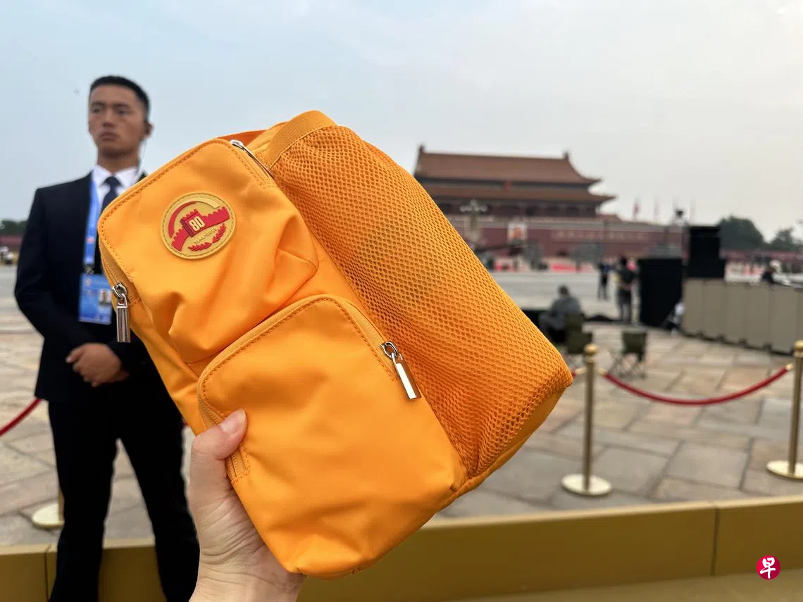 中国“九三”阅兵星期三(9月3日)上午9时在北京天安门广场举行,官方为现场每个观众提供观礼包。