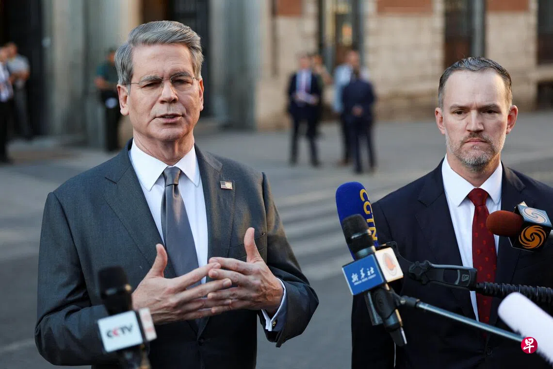由贝森特和贸易代表格里尔率领的美国代表团,与中国国务院副总理何立峰和首席贸易谈判代表李成刚带领的中国团队,星期天(14日)在马德里展开约六小时会谈。
