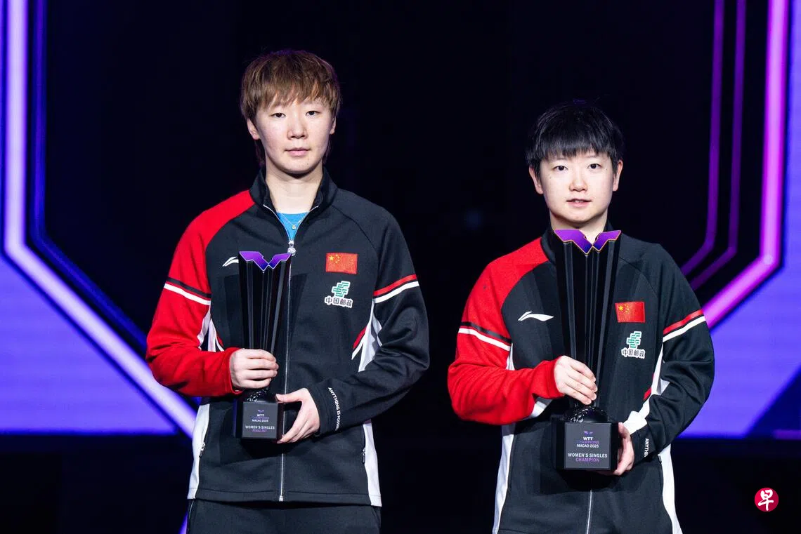 据新华社报道,孙颖莎星期天(14日)在2025年世界乒乓球职业大联盟(WTT)澳门冠军赛女子单打决赛中,以4比3战胜队友王曼昱,蝉联冠军。
