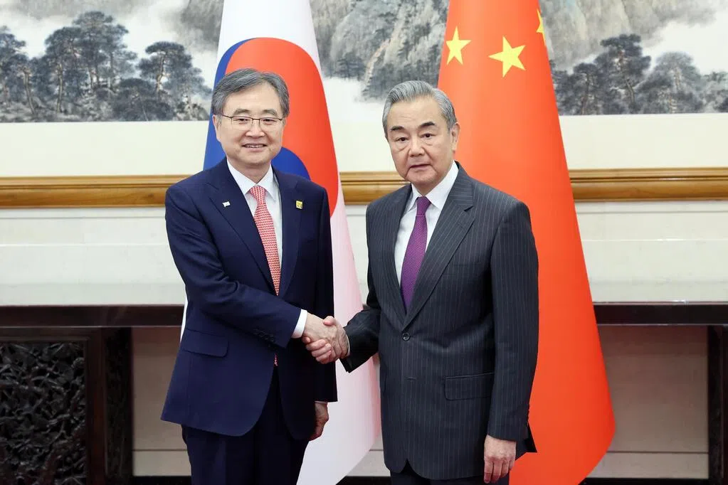 王毅星期三(9月17日)在北京会见韩国外长赵显,是韩国总统李在明政府今年6月成立以来的首次中韩外长会谈。