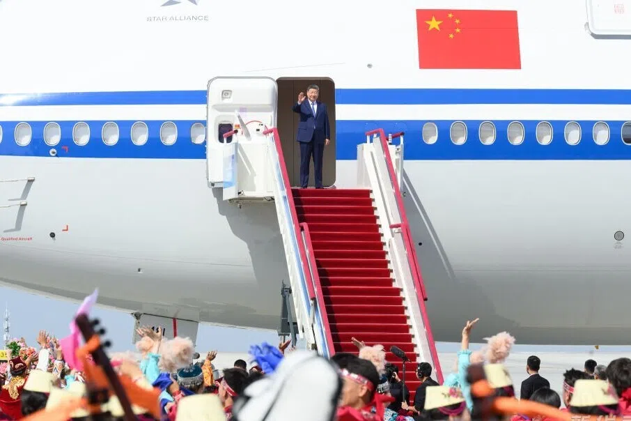 和习近平同机抵达的,还包括担任中央代表团团长的全国政协主席王沪宁,中央办公厅主任蔡奇,代表团副团长、统战部部长李干杰,国务院副总理何立峰,以及中央书记处书记王小洪等。