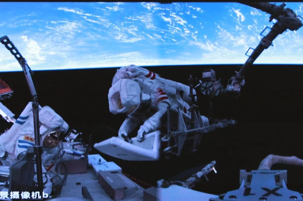 出舱活动期间,航天员陈中瑞、王杰完成了空间站空间碎片防护装置安装、舱外设备设施巡检等任务,这是中国首次由两名第三批航天员共同完成舱外作业任务。