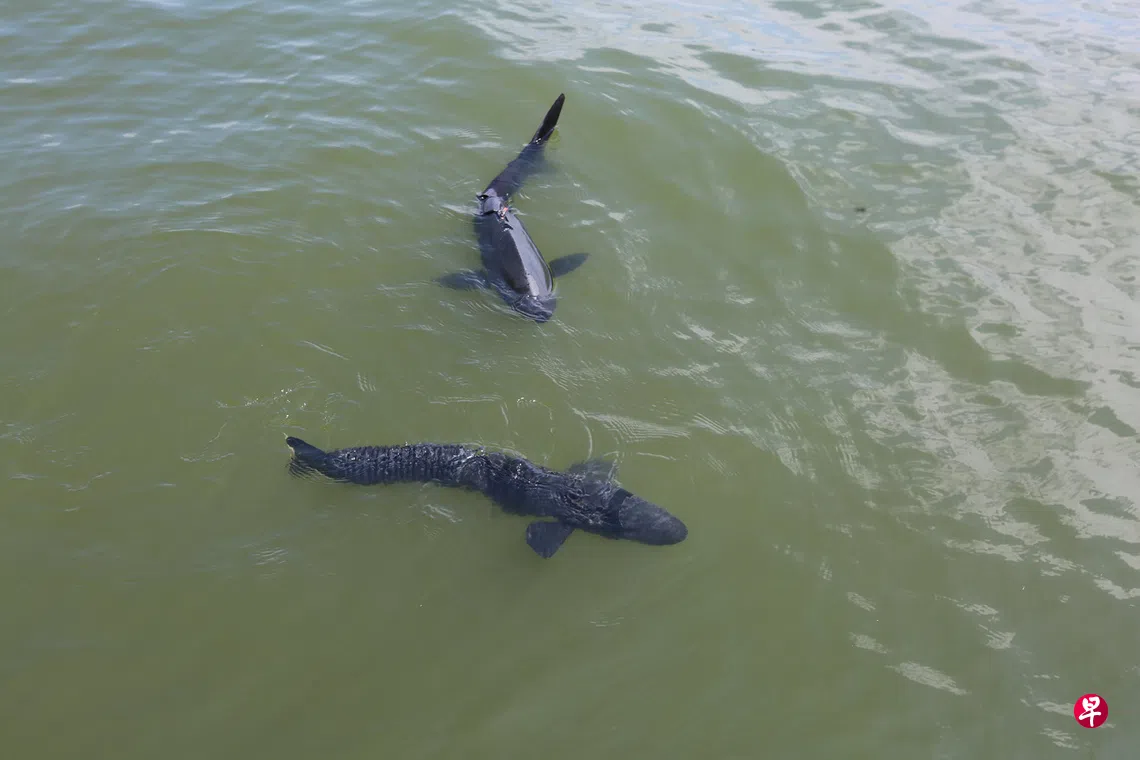 中国杭州西湖里出现两条外形似小鲨鱼的仿生机器鱼,能打捞遗失湖中的电子产品和物品,以及监测因民众放生出现的外来物种。