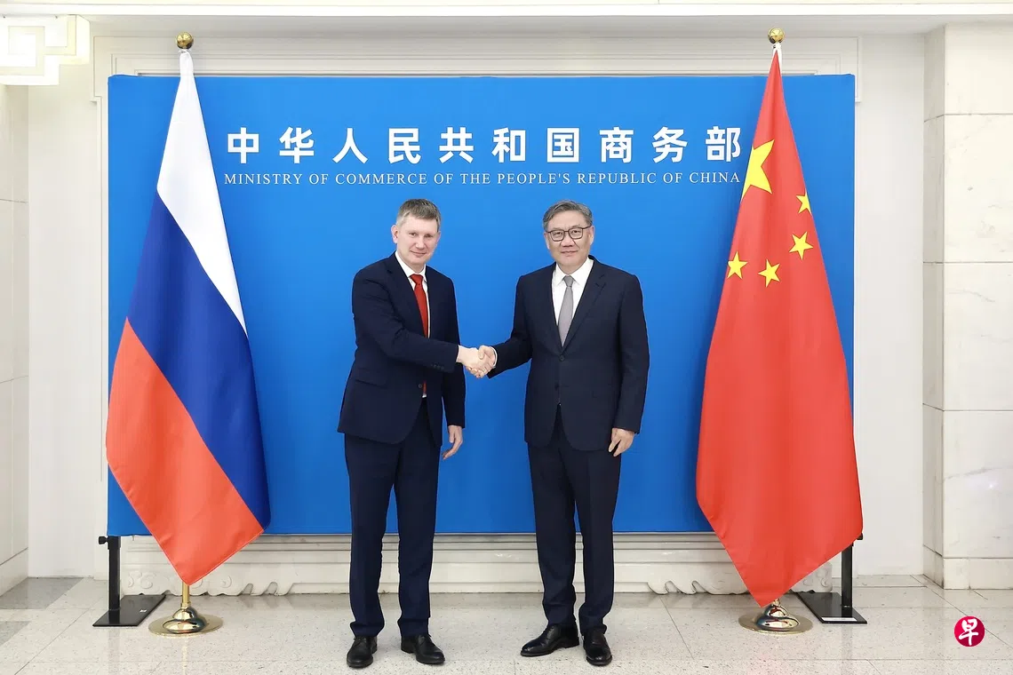 中方新闻稿引述列舍特尼科夫说,俄国愿保持双边贸易稳定发展,通过跨境电商扩大对华出口俄优质产品,欢迎中国企业赴俄投资,加强在金砖、上合、二十国集团(G20)等区域合作机制内的沟通、协调。