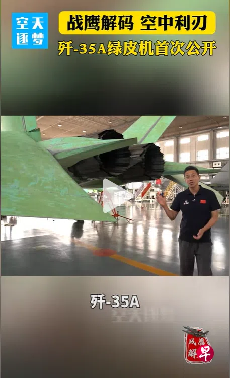 空天逐梦也在星期天发布视频,介绍中国自主研制的新一代隐身舰载战斗机歼-35。视频同时提到,这是歼-35机库首次公开。