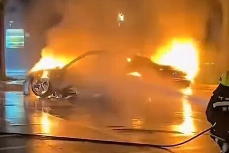 据悉,事发时涉事司机刚将车子停入车位不久,并未处于充电状态。
