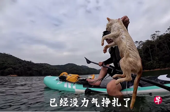 有目击者表示,多只猫受惊落水,几名在现场划桨板的路人将溺水的猫咪救上岸。