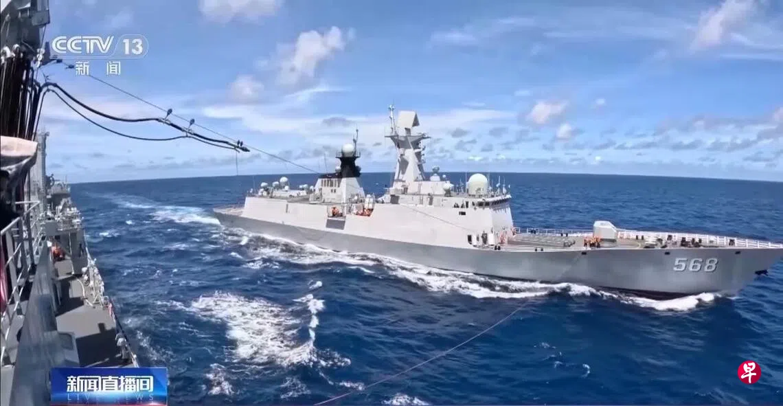 中国官媒报道,中国多型舰艇在南中国海展开实战化训练。