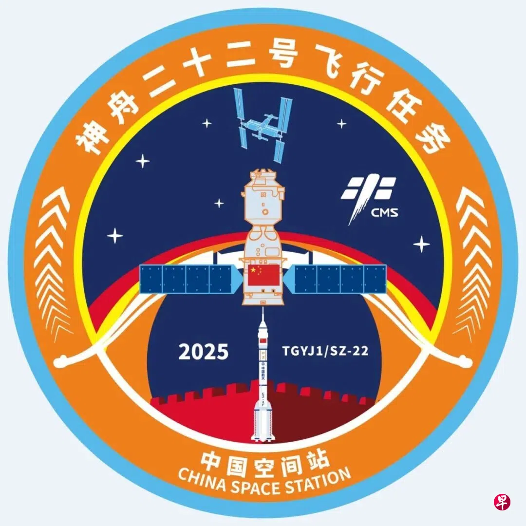 神舟二十二号飞船星期二(11月25日)发射在即,中国载人航天工程办公室正式发布本次飞行任务标识。