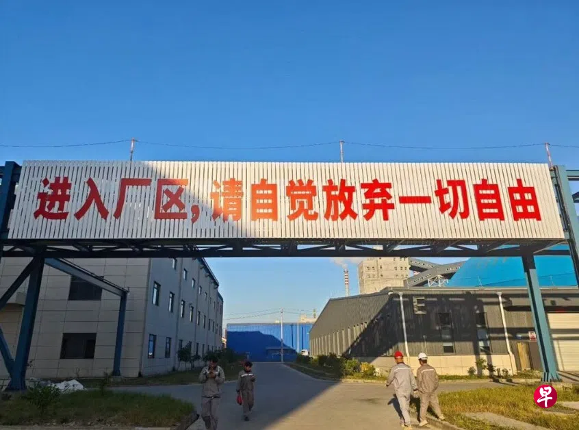 中国广西一家企业在厂区门口悬挂标语,称“进入厂区,请自觉放弃一切自由”,引起争议。