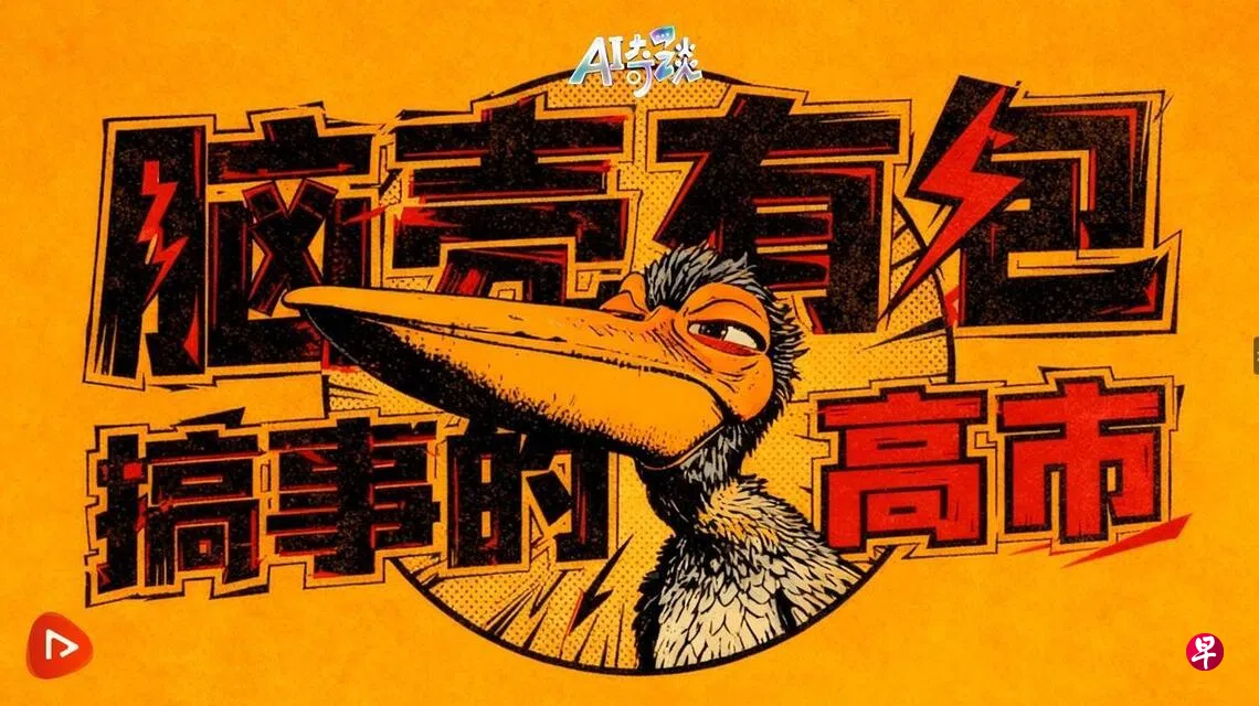 这部时长2分53秒的视频中,一只形似鹈鹕的鸟类以“搞事嬢嬢”的形象出现,大喊“我就是要搞事情”,并称‘我不是好惹的,我上头是鹰大爷罩起的,哪个敢惹我,就是跟他过不去”。