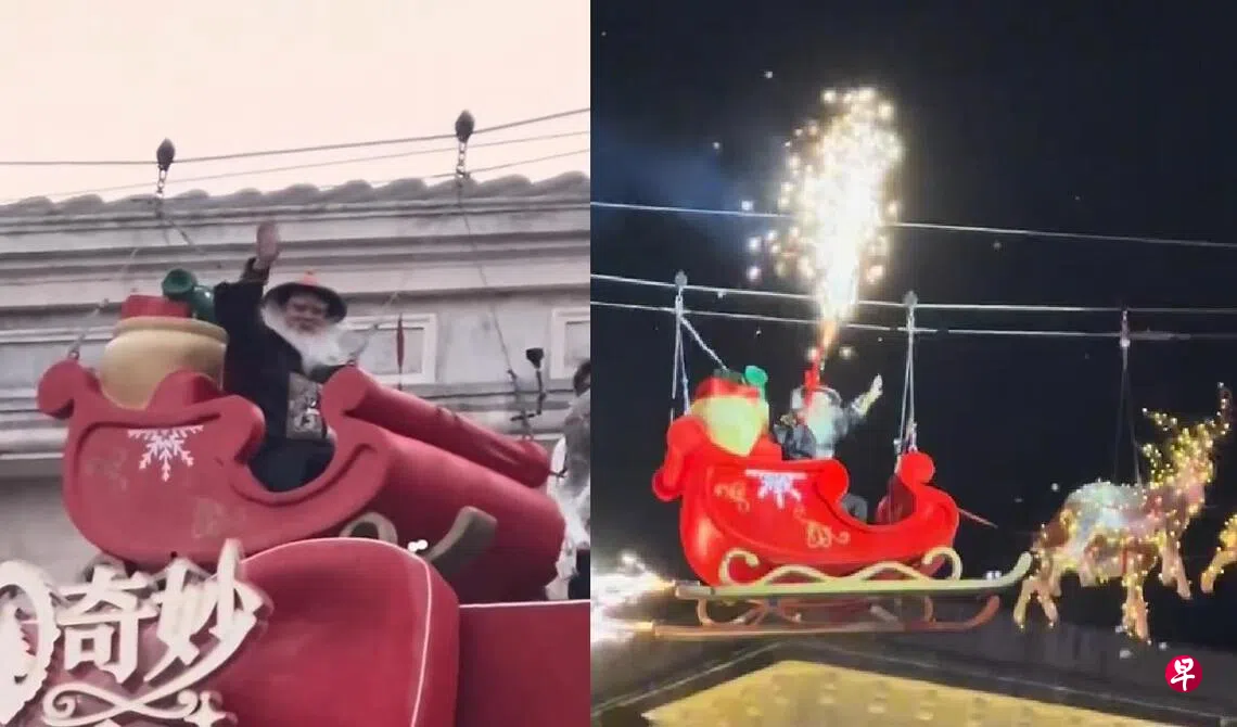 中国广东一座度假区出现了鳌拜版圣诞老人,在空中拉着圣诞鹿车,有关这位圣诞老人的视频也爆火。