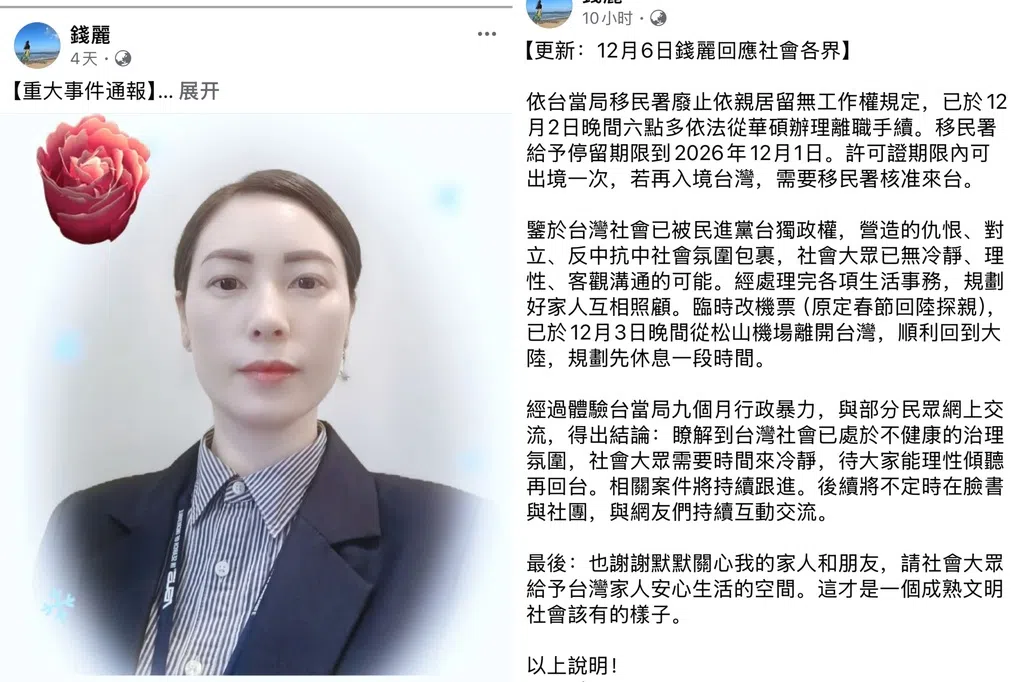 尽管提案内未提及高风险地区是哪里,但有网民质疑“用政治追杀最弱势陆配,台湾人权大大往前进一大步”,也有网民说“排外主要是想针对中国,那就针对中国。其他国家不该受到这些过度排外政策影响”等。