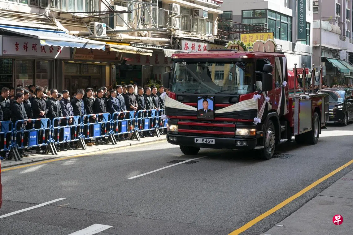 香港大埔火灾殉职消防员何伟豪星期五(12月19日)出殡,市民夹道送别。特首李家超等港府官员当天上午也到殡仪馆致哀。