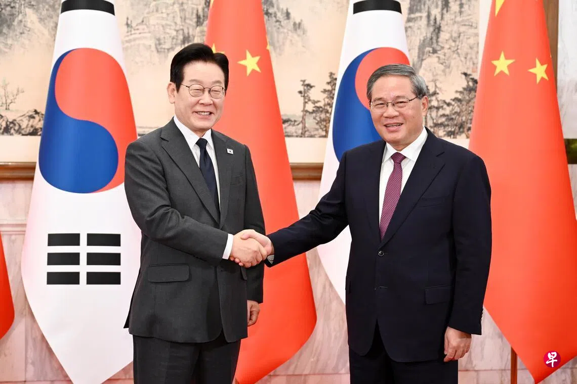 正在中国访问的韩国总统李在明,星期二(1月6日)与中国总理李强会面时,誓言将把恢复韩中两国关系发展成不可逆转的趋势,并希望李强能促进朝鲜半岛的和平与稳定。
